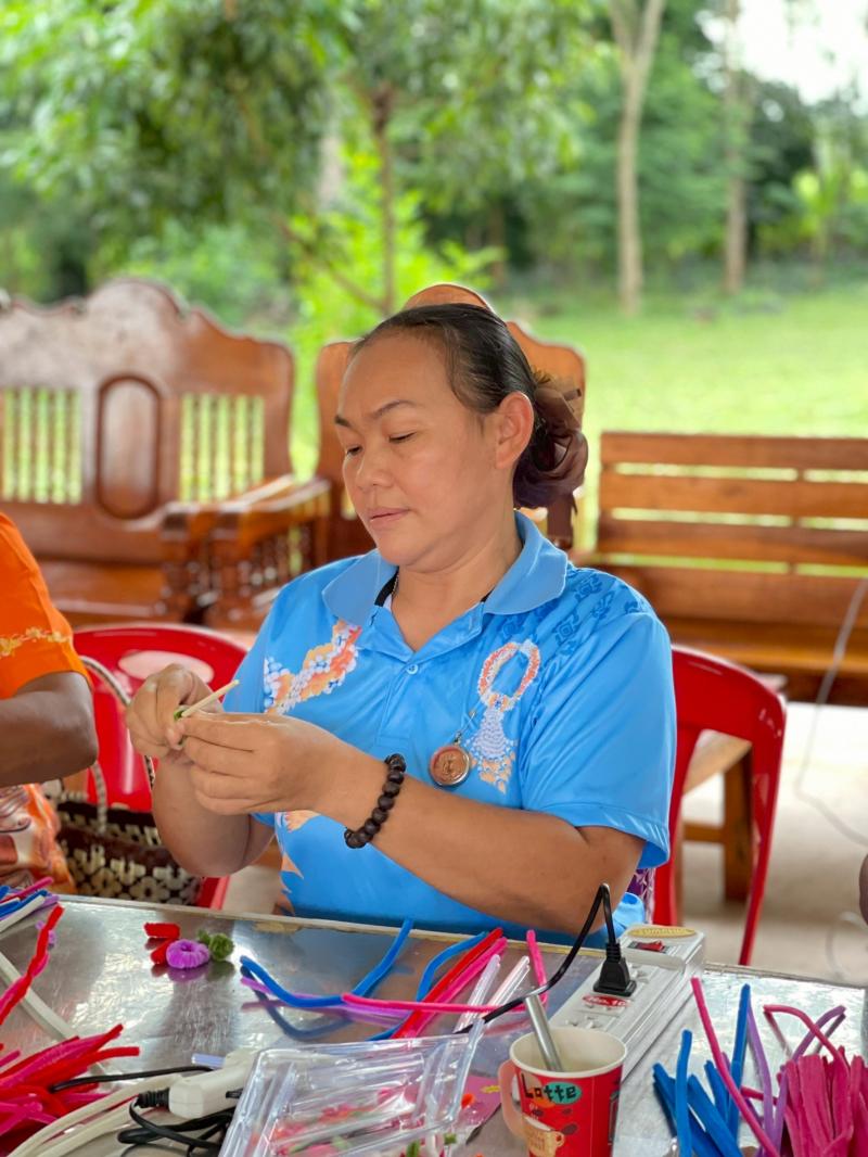 โครงการฝึกอบรมและส่งเสริมพัฒนาสตรี ( กิจกรรมทำเข็มกลัดกับพวงกุญแจ จากลวดกำมะหยี่ )