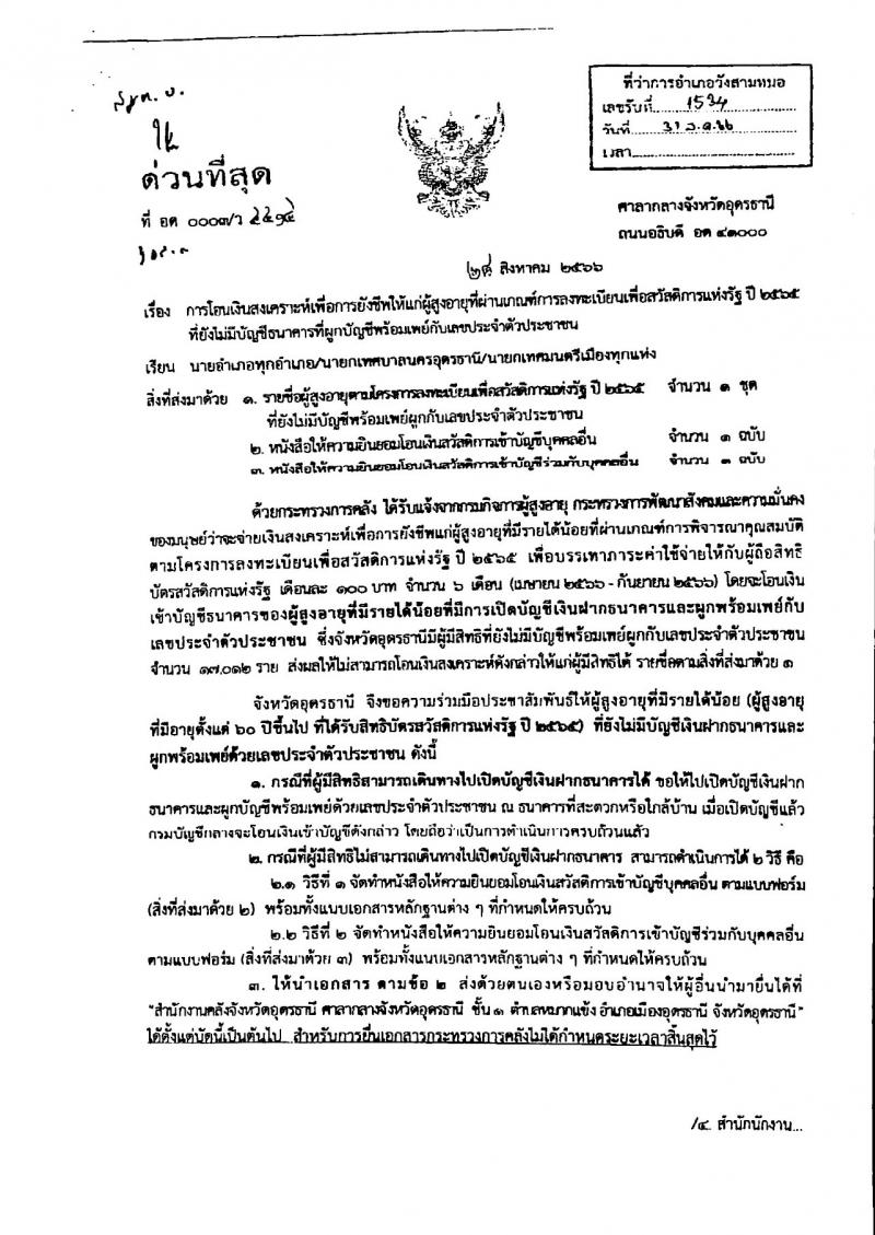 การจ่ายเงินสงเคราะห์ เพื่อการยังชีพแก่ผู้สูงอายุที่มีรายได้น้อยที่ได้รับสิทธิ์ในโครงการลงทะเบียนเพื่อสวัสดิการแห่งรัฐ​ ปี 2565