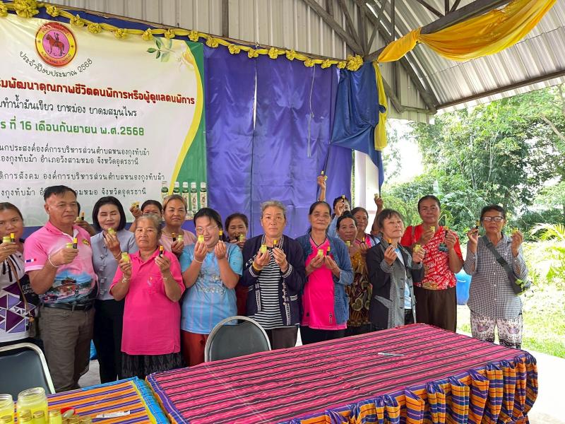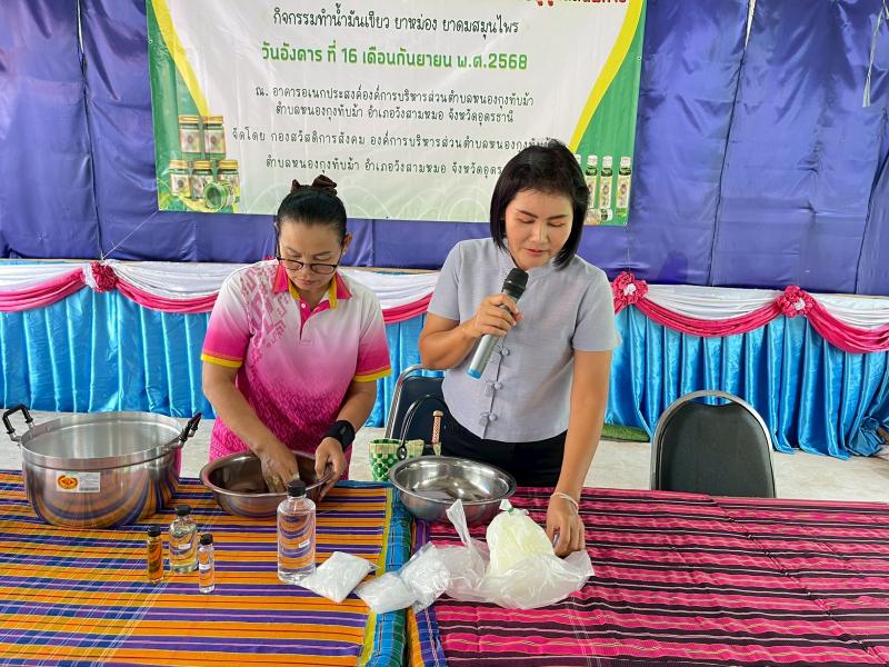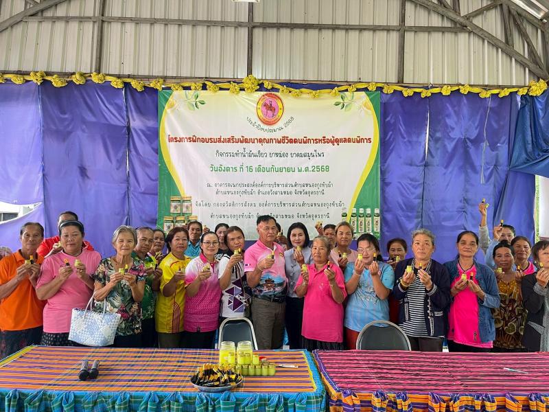 รายละเอียด : ในปัจจุบันเทคโนโลยีก้าวหน้าไปมากทำให้สังคมวัฒนธรรมความเป็นอยู่ ของคนในสังคมเปลี่ยนไป ผลของการใช้เทคโนโลยีสมัยใหม่ก่อให้เกิดปัญหาในสังคมมากขึ้นทุกวัน ประชาชนในชุมชนขาดความสนใจในภูมิปัญญาไทยการดูแลสุขภาพเบื้องต้นที่เกี่ยวกับการปวดเมื่อยและเจ็บปวดต่างๆ ในการดูแลสุขภาพแบบแผนไทย ซึ่งการนวดแผนไทยถือเป็นภูมิปัญญาอันล้ำค่าของคนไทย ที่สืบทอดมาแต่โบราณ และใช้สมุนไพรในการลดอาการปวดเมื่อยตามร่างการ ลดการฟกซ้ำ ทำให้การไหลเวียนของเลือดรมดีขึ้น การทำน้ำมันเขียว ยาหม่อง ยาดมสมุนไพรเป็นการบำบัดรักษาของแพทย์แผนไทยโดยการนวด สามารถกระตุนระบบไหลเวียนโลหิต ลดการปวดเมื่อยตามร่างกาย เคล็ดขัดยอก และบรรเทาการปวดได้ จึงได้จัดทำโครงการฝึกอบรมส่งเสริมพัฒนาคุณภาพชีวิตคนพิการหรือผู้ดูแลคนพิการ ประจำปีงบประมาณ ๒๕๖๘ ( กิจกรรมทำน้ำมันเขียว ยาหม่อง ยาดมสมุนไพร ) เพื่อส่งเสริมให้ประชาชนรู้จักการใช้สมุนไพรในการดูแลรักษาสุขภาพ