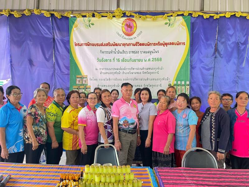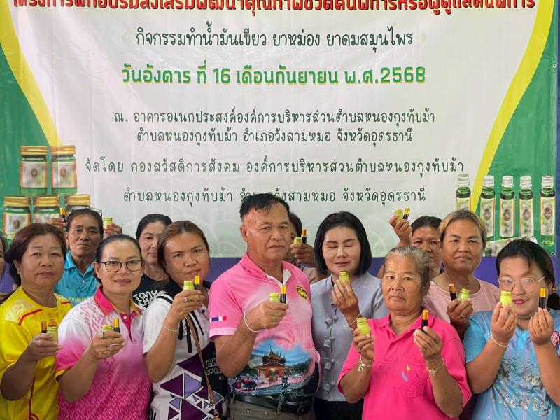 โครงการฝึกอบรมส่งเสริมพัฒนาคุณภาพชีวิตคนพิการหรือผู้ดูแลคนพิการ ( กิจกรรมทำน้ำมันเขียว ยาหม่อง ยาดมสมุนไพร )