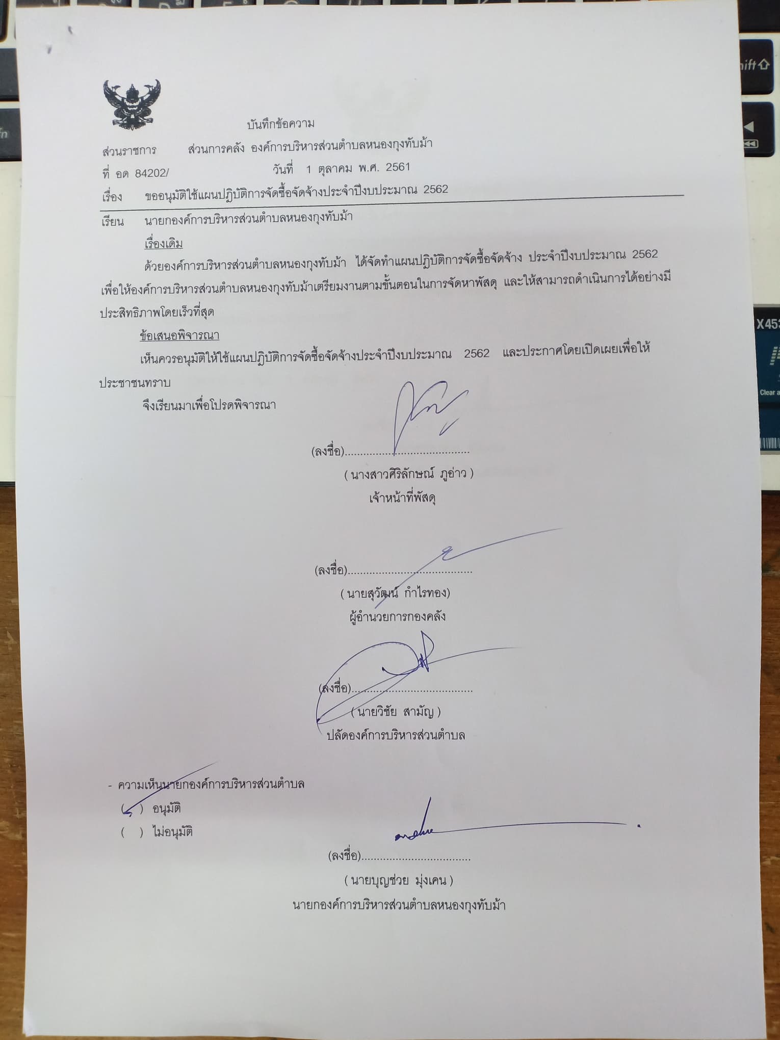 บันทึกข้อความ ขออนุมัติใช้แผนปฏิบัติการจัดซื้อจัดจ้างประจำปีงบประมาณ 2562