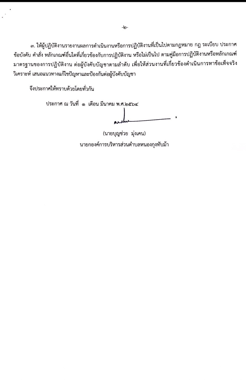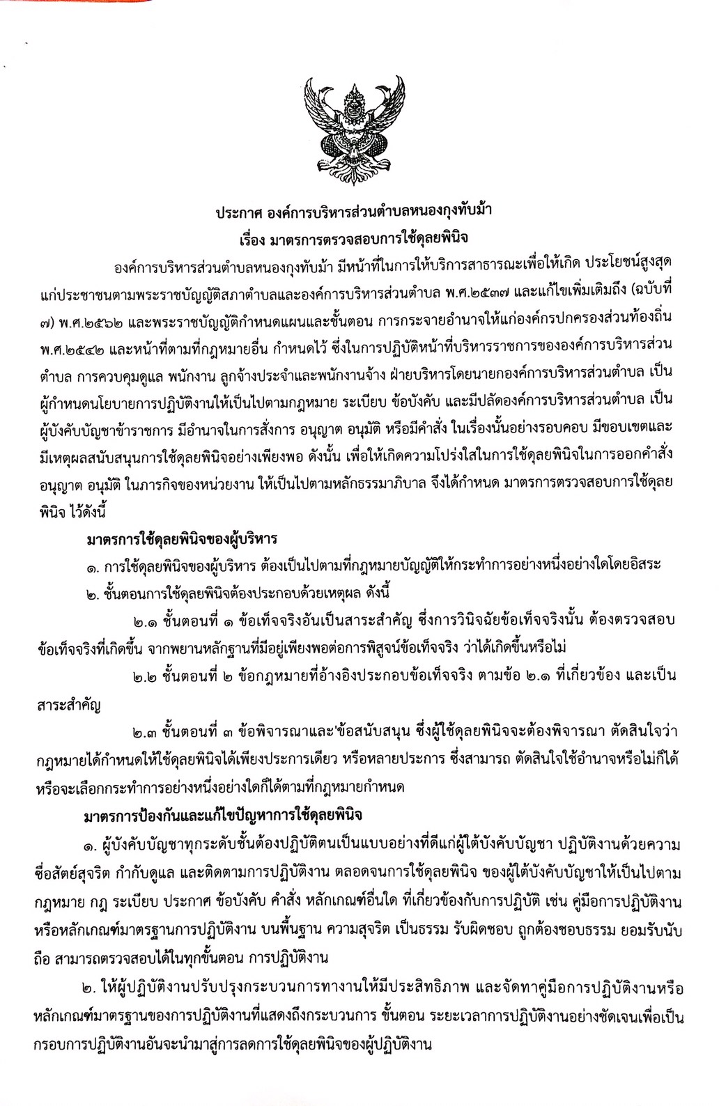 ประกาศองค์การบริหารส่วนตำหนองกุงทับม้า เรื่องมาตรการตรวจสอบการใช้ดุลยพินิจ