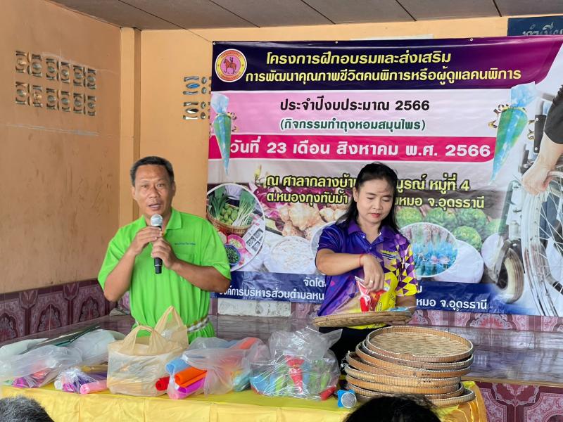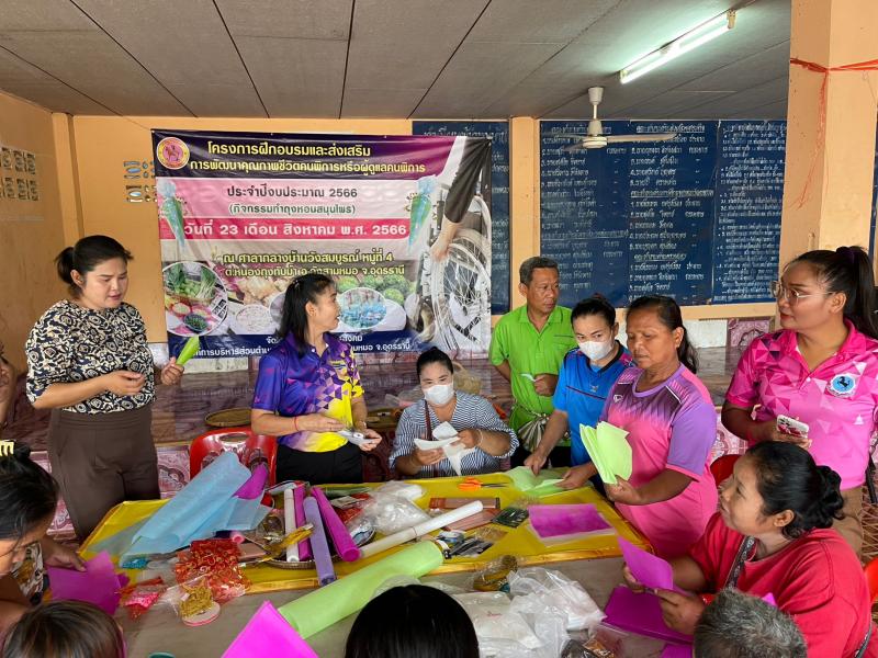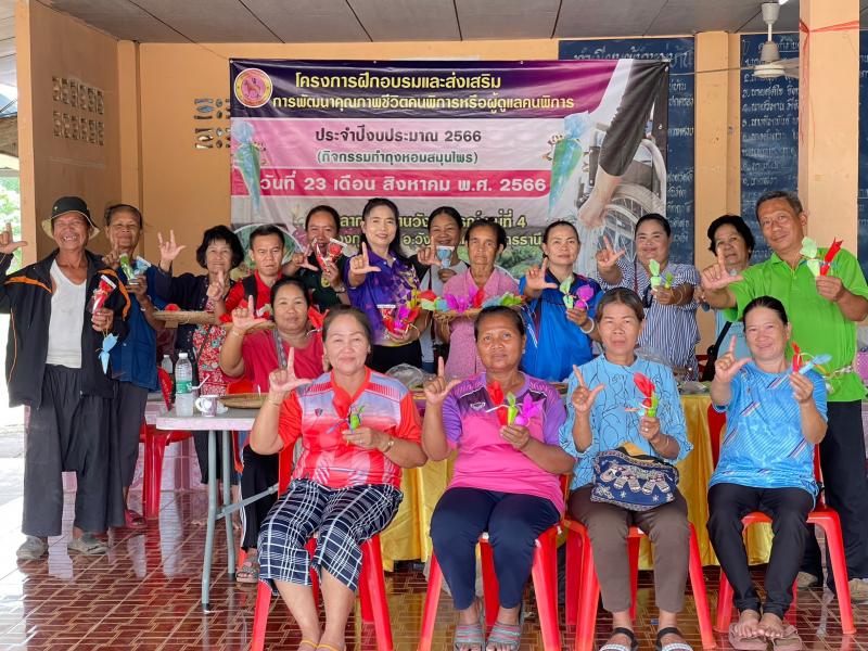 โครงการฝึกอบรมและส่งเสริมการพัฒนาคุณภาพชีวิตคนพิการหรือ ผู้ดูแลคนพิการประจำปีงบประมาณ ๒๕๖๖ (กิจกรรมทำถุงหอมสมุนไพร)