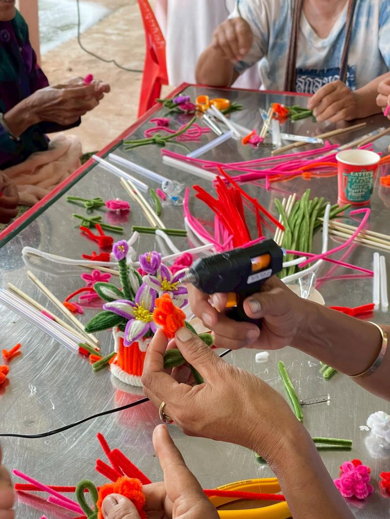 โครงการฝึกอบรมและส่งเสริมพัฒนาสตรี ( กิจกรรมทำเข็มกลัดกับพวงกุญแจ จากลวดกำมะหยี่ )