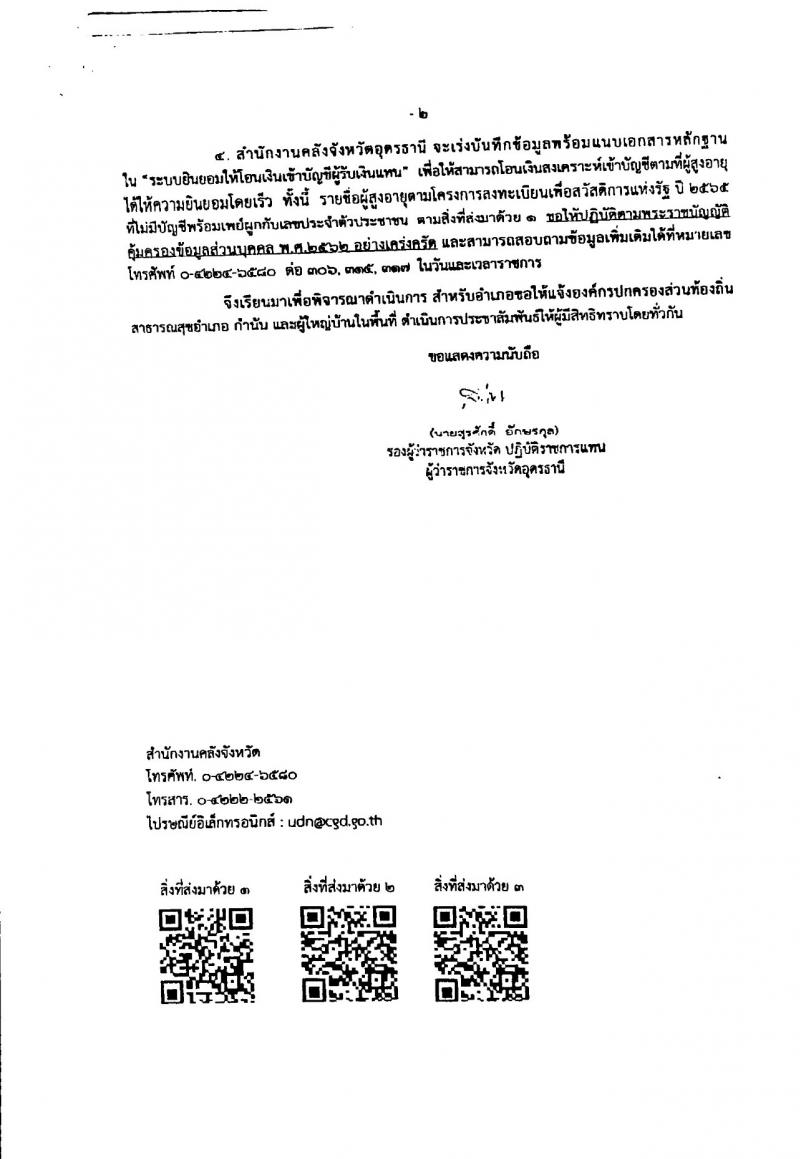การจ่ายเงินสงเคราะห์ เพื่อการยังชีพแก่ผู้สูงอายุที่มีรายได้น้อยที่ได้รับสิทธิ์ในโครงการลงทะเบียนเพื่อสวัสดิการแห่งรัฐ​ ปี 2565
