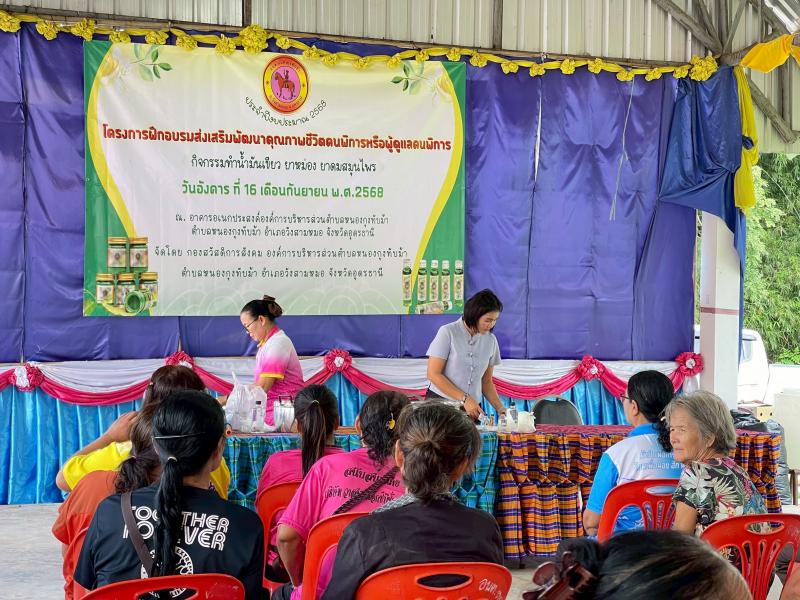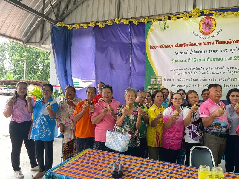 รายละเอียด : ในปัจจุบันเทคโนโลยีก้าวหน้าไปมากทำให้สังคมวัฒนธรรมความเป็นอยู่ ของคนในสังคมเปลี่ยนไป ผลของการใช้เทคโนโลยีสมัยใหม่ก่อให้เกิดปัญหาในสังคมมากขึ้นทุกวัน ประชาชนในชุมชนขาดความสนใจในภูมิปัญญาไทยการดูแลสุขภาพเบื้องต้นที่เกี่ยวกับการปวดเมื่อยและเจ็บปวดต่างๆ ในการดูแลสุขภาพแบบแผนไทย ซึ่งการนวดแผนไทยถือเป็นภูมิปัญญาอันล้ำค่าของคนไทย ที่สืบทอดมาแต่โบราณ และใช้สมุนไพรในการลดอาการปวดเมื่อยตามร่างการ ลดการฟกซ้ำ ทำให้การไหลเวียนของเลือดรมดีขึ้น การทำน้ำมันเขียว ยาหม่อง ยาดมสมุนไพรเป็นการบำบัดรักษาของแพทย์แผนไทยโดยการนวด สามารถกระตุนระบบไหลเวียนโลหิต ลดการปวดเมื่อยตามร่างกาย เคล็ดขัดยอก และบรรเทาการปวดได้ จึงได้จัดทำโครงการฝึกอบรมส่งเสริมพัฒนาคุณภาพชีวิตคนพิการหรือผู้ดูแลคนพิการ ประจำปีงบประมาณ ๒๕๖๘ ( กิจกรรมทำน้ำมันเขียว ยาหม่อง ยาดมสมุนไพร ) เพื่อส่งเสริมให้ประชาชนรู้จักการใช้สมุนไพรในการดูแลรักษาสุขภาพ