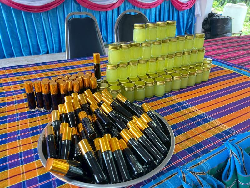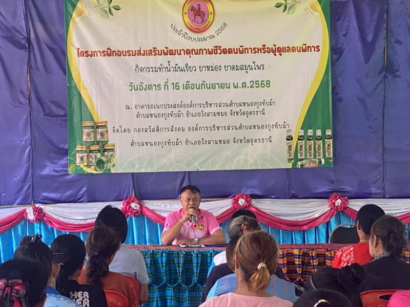 โครงการฝึกอบรมส่งเสริมพัฒนาคุณภาพชีวิตคนพิการหรือผู้ดูแลคนพิการ ( กิจกรรมทำน้ำมันเขียว ยาหม่อง ยาดมสมุนไพร )