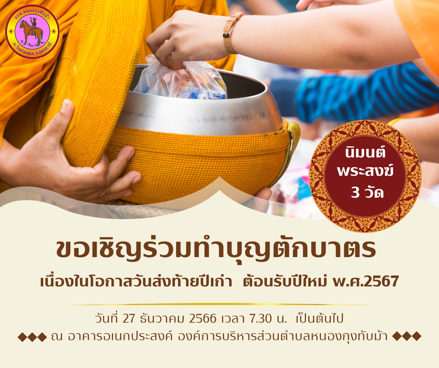 ขอเชิญชวนพุทธศาสนิกชนทั้งหลาย 〔ร่วมทำบุญตักบาตร〕 ۰ เนื่องในโอกาสวันส่งท้ายปีเก่า ต้อนรับปีใหม่ พ.ศ.2567 [26 ธันวาคม 2566]